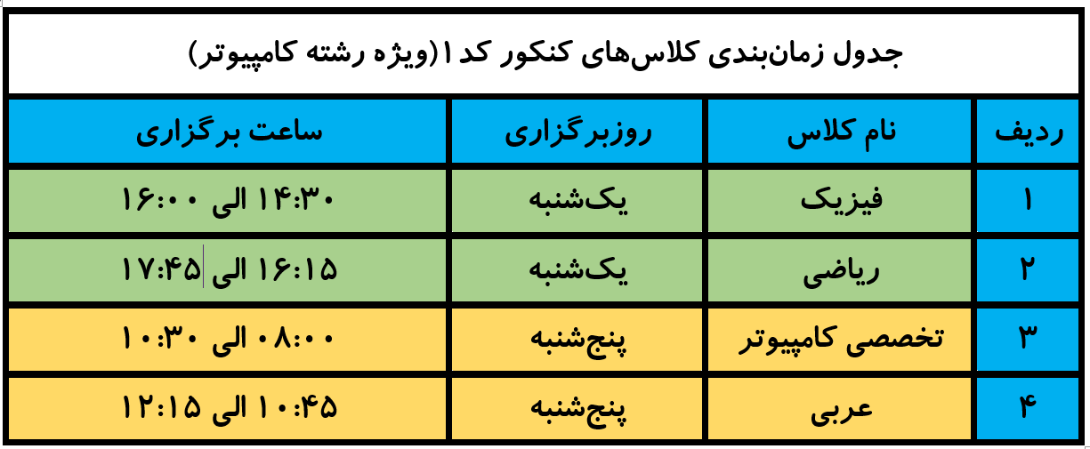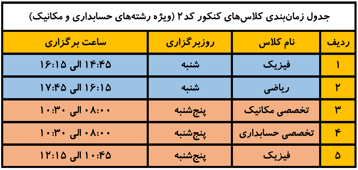 اطلاعیه جدول زمانبندی کلاسهای کنکور 1404