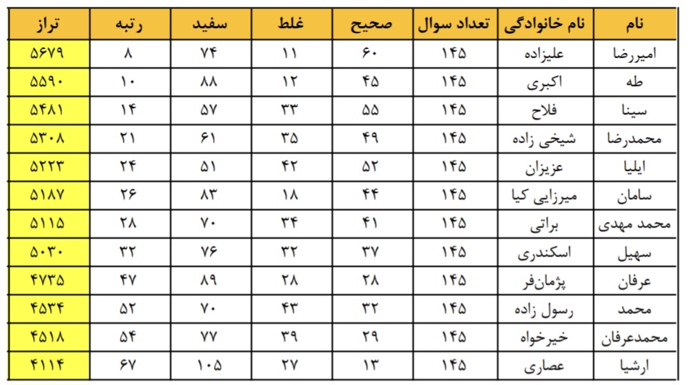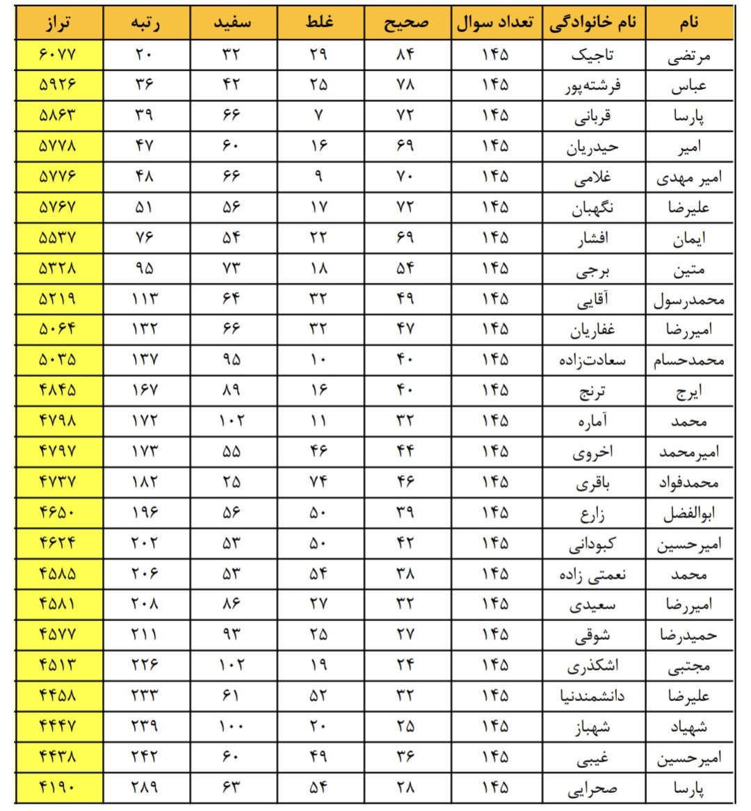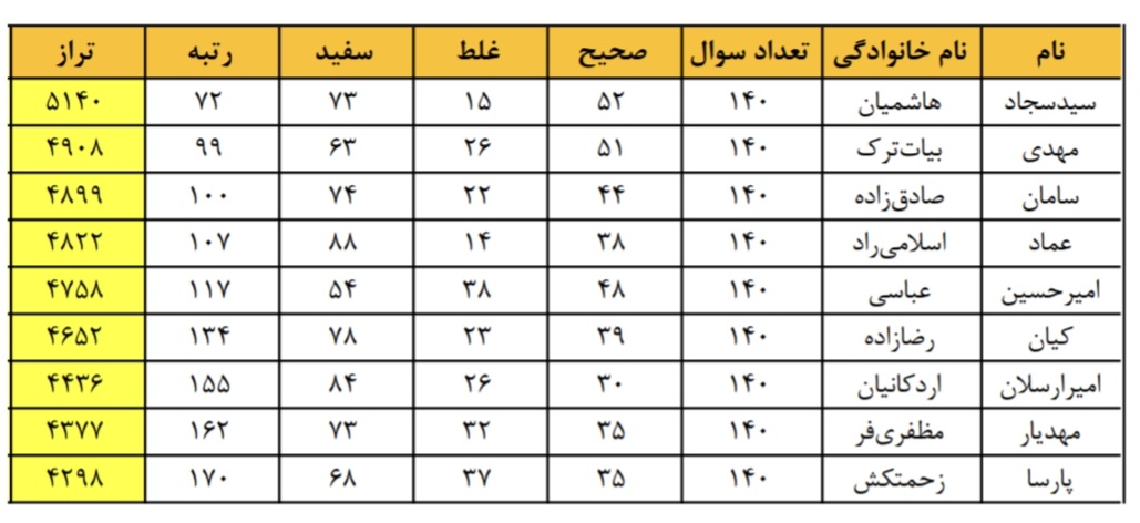نتایج آزمون آزمایشی کشوری آذرماه 1404
