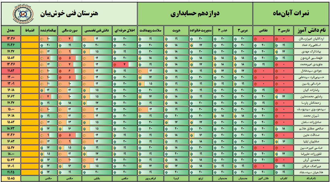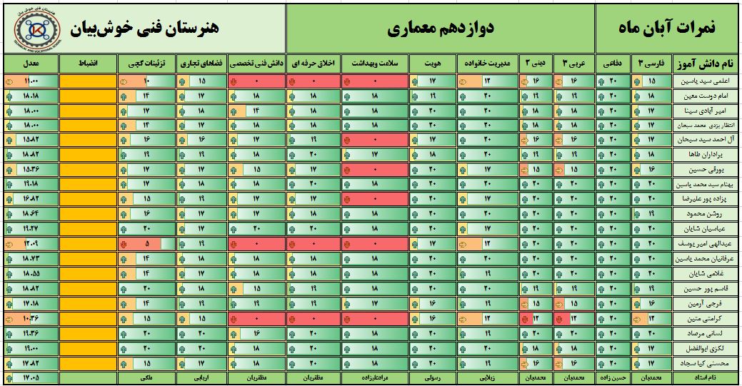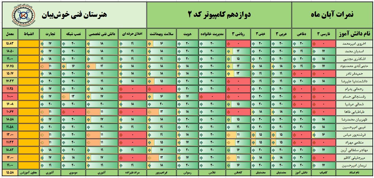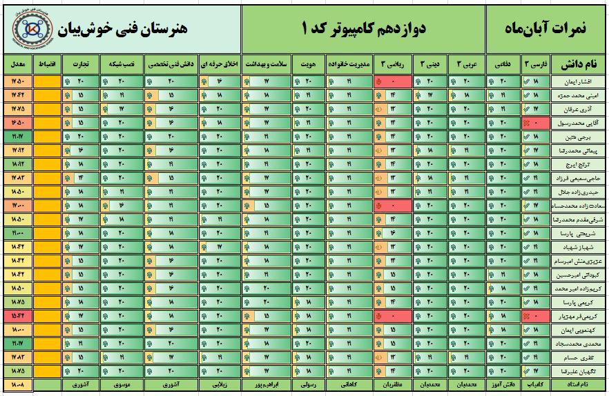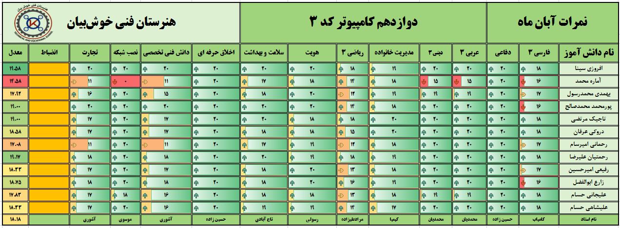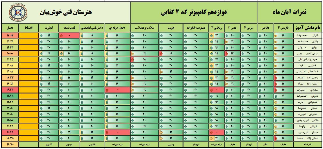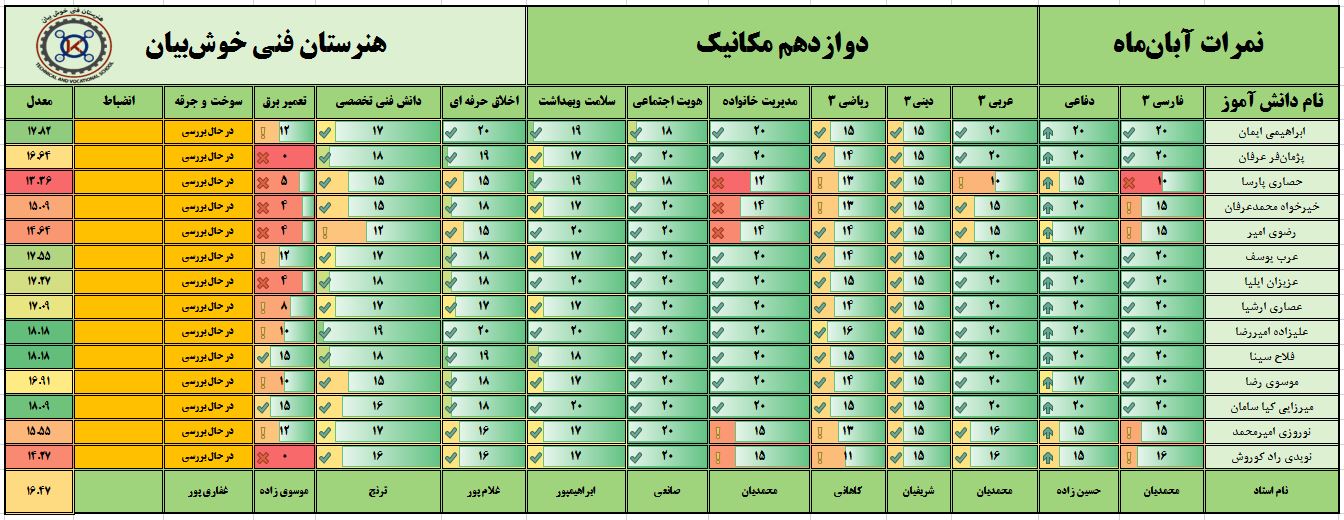 نمرات ماهیانه آبانماه – پایه دوازدهم