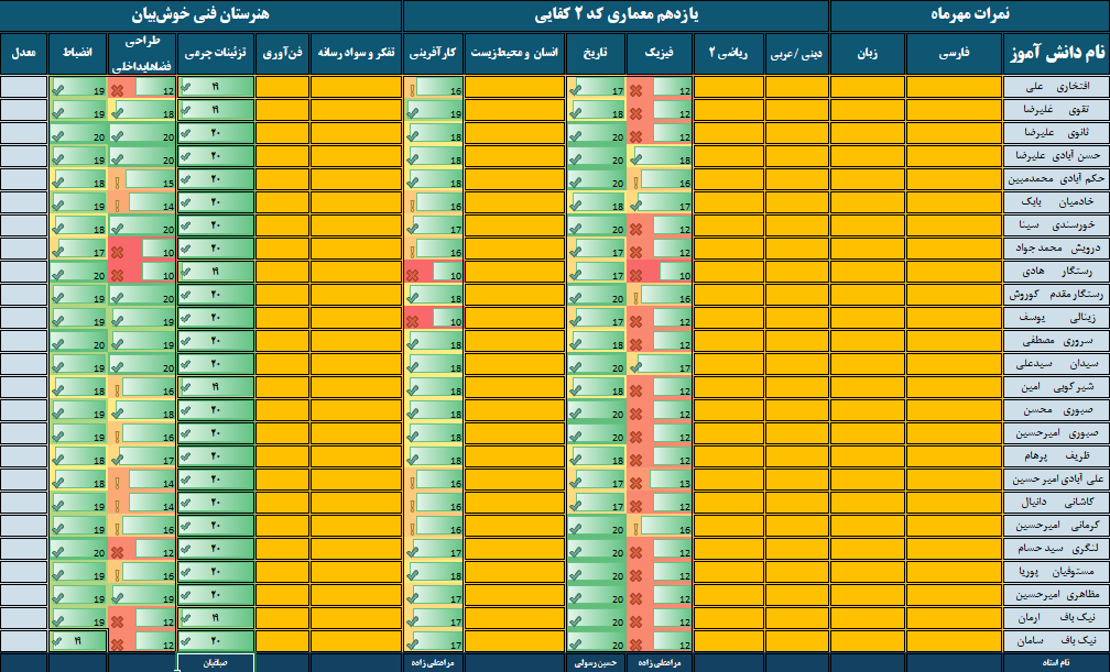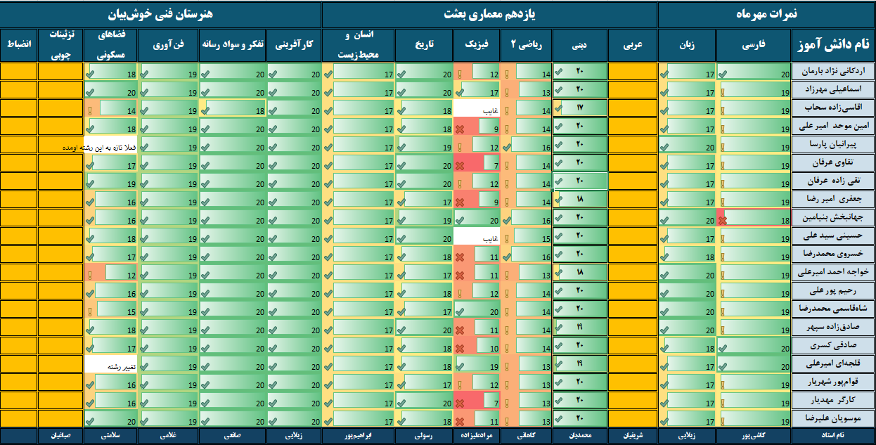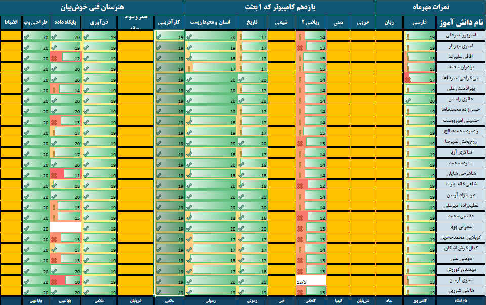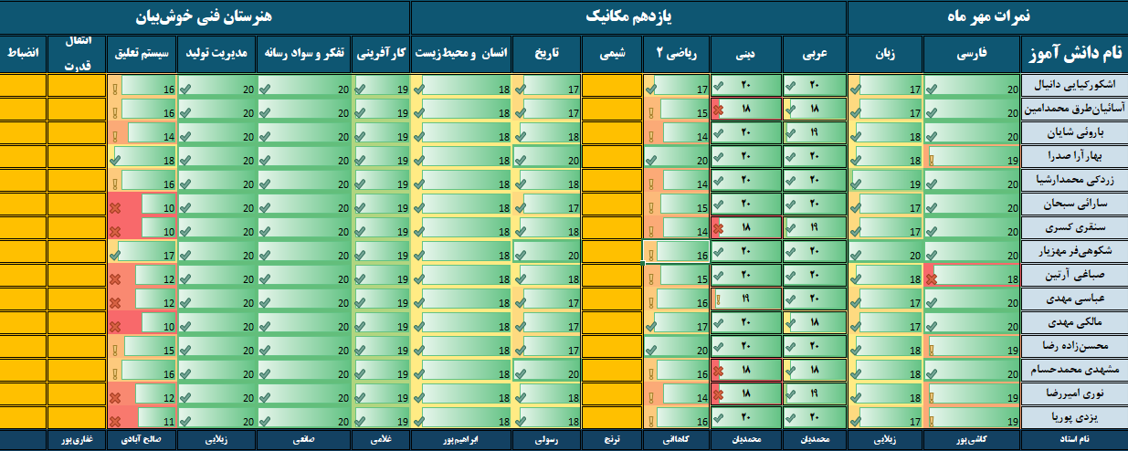 نمرات ماهیانه مهرماه – پایه یازدهم