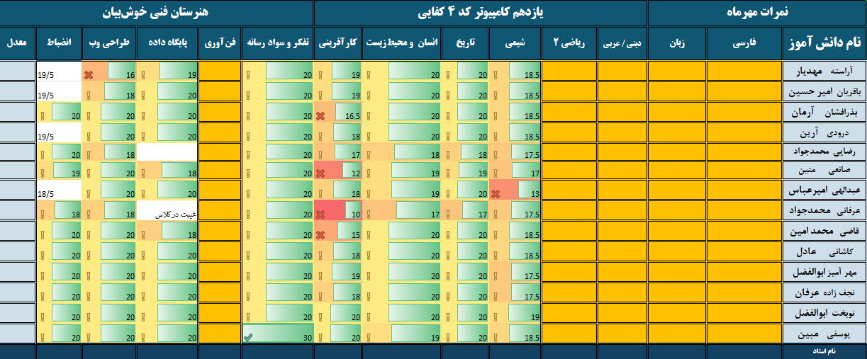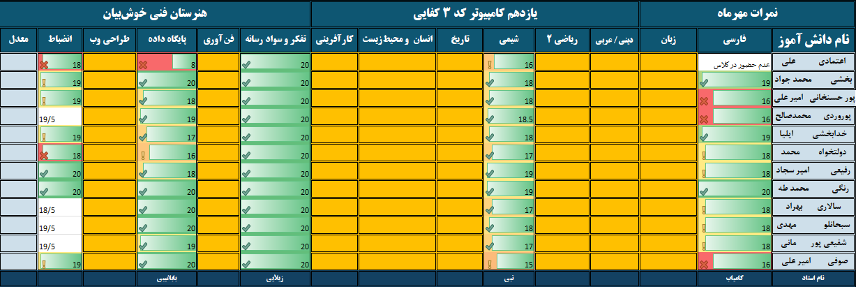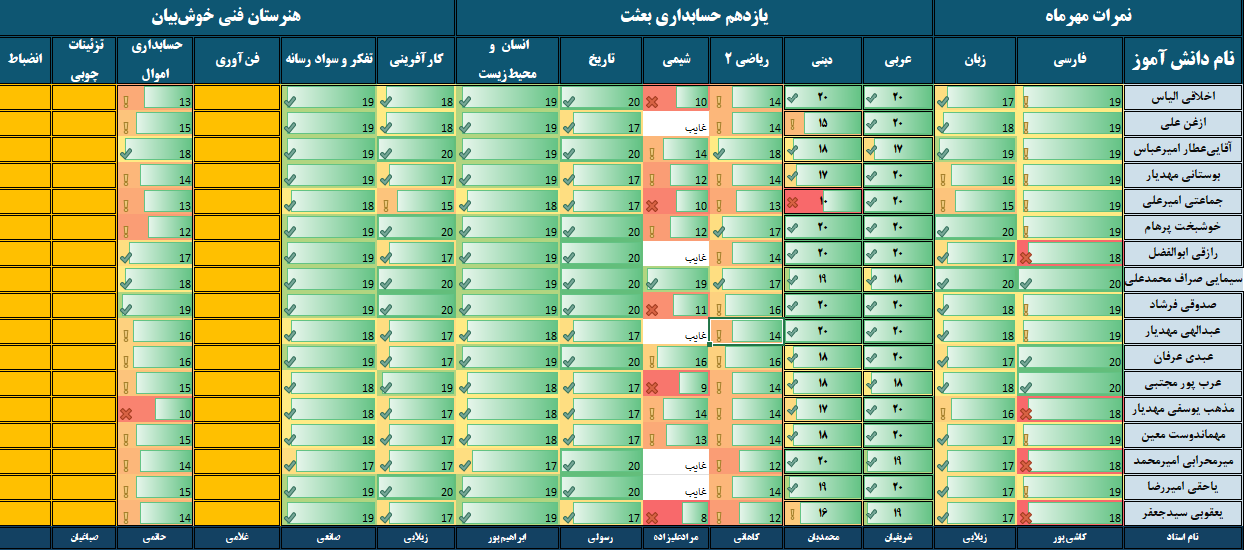 کارنامه ماهانه
