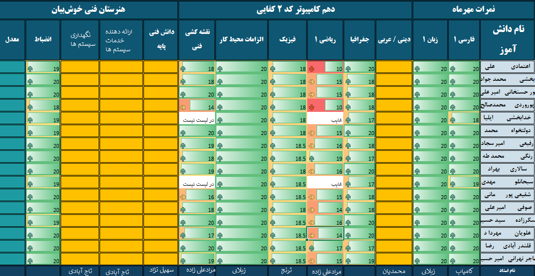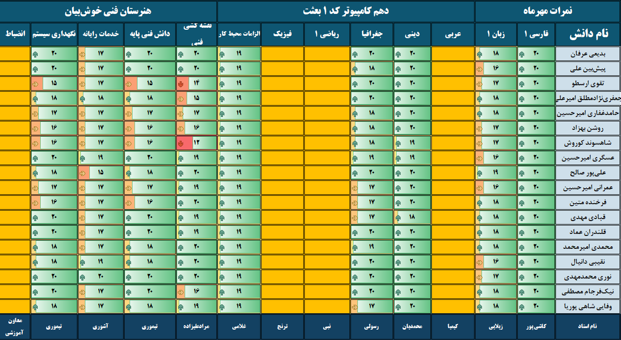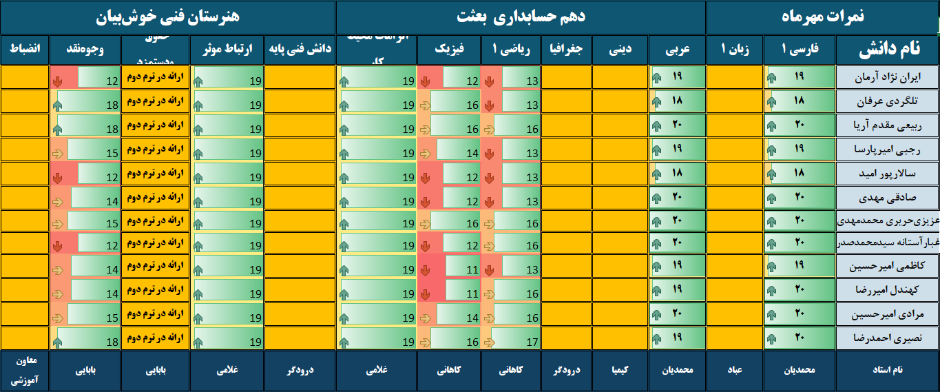 نمرات ماهیانه مهرماه – پایه دهم